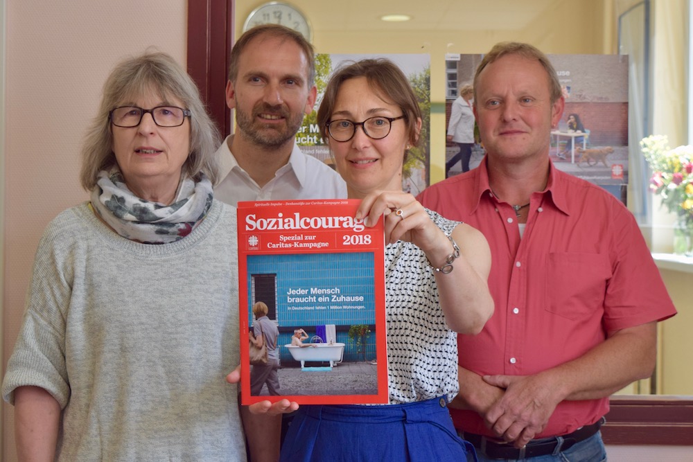 Deutschlandweit engagiert sich der Caritasverband mit der Jahreskampagne 2018 unter dem Motto „Jeder Mensch braucht ein Zuhause“ für bezahlbaren Wohnraum. In Göttingen präsentierte die Caritas ihre Forderungen in den Räumen des sozialen Mittagstischs St. Michael, der seit September 1990 besteht. Bis zu 80 Gäste, darunter viele Wohnungslose, erhalten seitdem gegen ein geringes Entgelt Tag für Tag eine warme Mahlzeit. „Viele sprechen nicht darüber, aber an den Rucksäcken und Schlafrollen können wir erkennen, dass unsere Gäste keine eigene Wohnung haben", berichtet Anna Werner-Parker, Leiterin des Mittagstischs. „Wohnungsnot zieht viele andere Entbehrungen nach sich“, sagt Jesuitenpater Ludger Joos, Pfarrer von St. Michael.