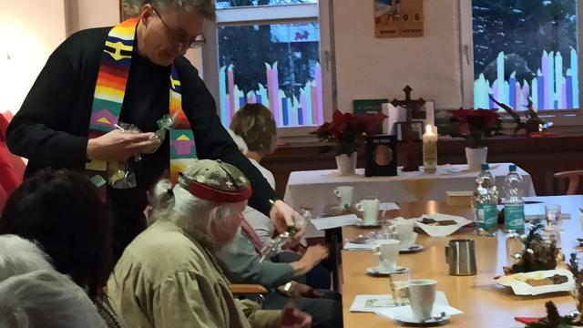 Propst Berkefeld überreichte allen einen Engel mit einem Herz in der Mitte als Zeichen der Botschaft „Gott hat ein Herz für uns Menschen und möchte uns zu Herzen gehen.“ Nach den Fürbitten und dem Vaterunser sangen wir zum Abschluss das Lied: „Maria durch ein Dornwald ging“. Die schöne Zeit des Zusammenseins bei Kaffee, selbstgebackenen Keksen und schönen tiefgründigen Worten des Propstes wird noch lange in den Herzen der Tagesgäste und Angehörigen sowie Mitarbeitenden bleiben. Wir sagen dafür Danke.
