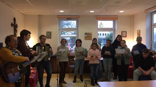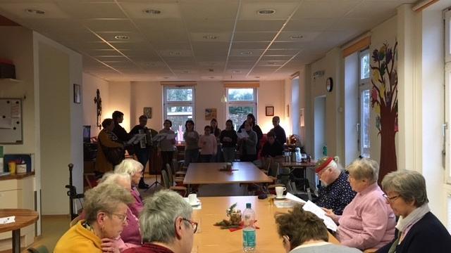 Dann besuchte uns Gemeindereferentin Verena Nöhren mit ihrem gemischten Singkreis, Jugendliche in verschiedenen Altersgruppen. Auch das war ein sehr schöner Nachmittag mit bekannten Liedern wie „Ein Licht geht uns auf in der Dunkelheit, tragt in die Welt nun ein Licht“. Die Wünsche unserer Gäste wurden mit einbezogen. „O du Fröhliche“ wurde von einem Gast als persönliches Lieblingslied in der Weihnachtszeit gewünscht. Es war ein schöner Nachmittag mit zufriedenen Gästen.