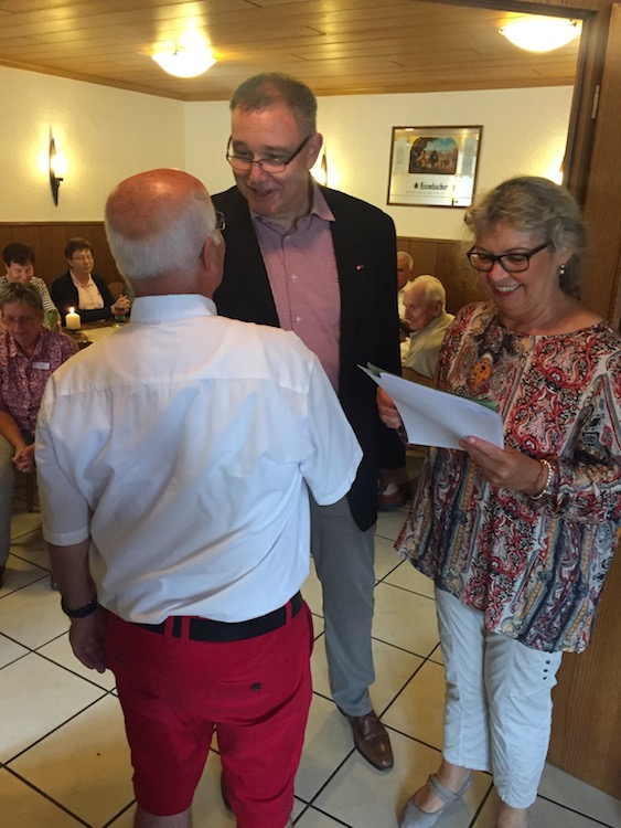 Zum Mittagessen in der Gaststätte Deppe bei Schnitzel satt war Frau Annelore von Hof stellvertretend für die Stadt Duderstadt und Ralf Regenhardt als Caritasvorstand gekommen, um die Ehrenamtlichen einzeln mit einer Ehrenurkunde und einem kleinen Geschenk zu verabschieden. Was wäre eine solche Urlaubswoche ohne all das bürgerschaftliche Engagement im Fahrdienst, in der Begleitung der Kleinbusse und im Küchendienst aber auch Gottesdienstgestaltung. Für dieses Engagement bedankten sich die Stadt, die Gemeinde und der Caritasverband mit einem Erinnerungsanhänger von Urlaub ohne Koffer 2018.