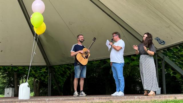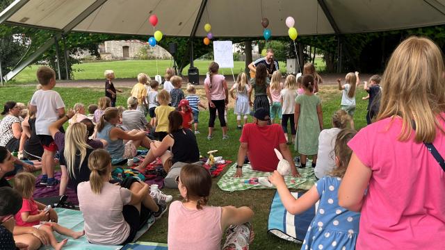 „Für die passende Musik haben wir natürlich auch gesorgt“, sagt Madlin Dettenbach. Bei Kinderliedermacher Mathi sei Schmunzeln erlaubt, wenn er über miese fiese Riesen, Piraten oder Mülldetektive singe. Rund 400 Menschen kamen zusammen, die Kinder tanzten bei Mathis Auftritt begeistert mit.