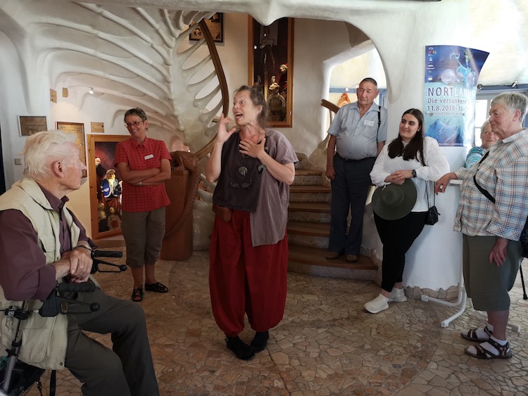 Erster Anlaufpunkt war das Theater der Nacht – ein Puppentheater und Kleinkunstbühne der besonderen Art. Frau Ruth Brockhausen begeisterte durch ihre authentischen Berichte wie einst ein Feuerwehrhaus sich mithilfe von Kobolden, Geistern und Elfen in das verwandelte, was heute dieses Theater ausmacht. Requisiten und all das Gesprochene war eine Inszenierung und versetze die Zuschauermenge in eine andere Welt.